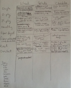 As you can see, I like charts. The 8 yarns and 3 spinning tools lend themselves nicely to a chart. Making a list of fibers helped me build some variety in my chart. The fair doesn't award fibers differently, but the judge will recognize when harder fibers are selected, and grade accordingly. That's a discussion yet to come ... What helps your entry stand out, or How is your entry judged.